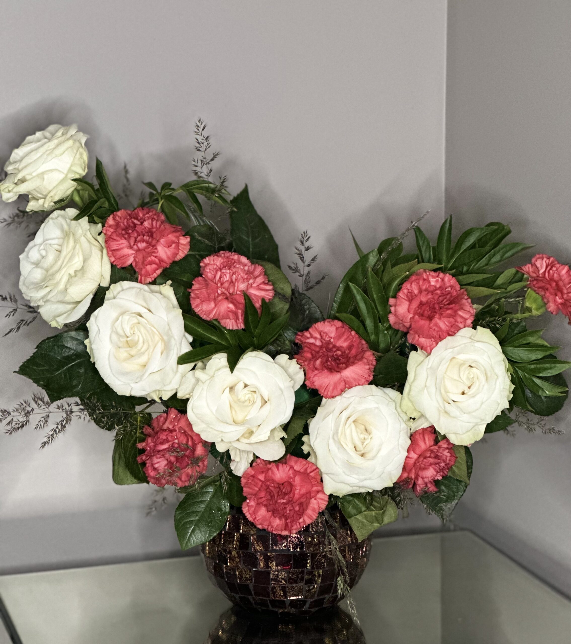 A Loving heart-is a bouquet of white roses and a touch of pink carnations.A beautiful and simple combination,on that will help to express your sincere intentions.