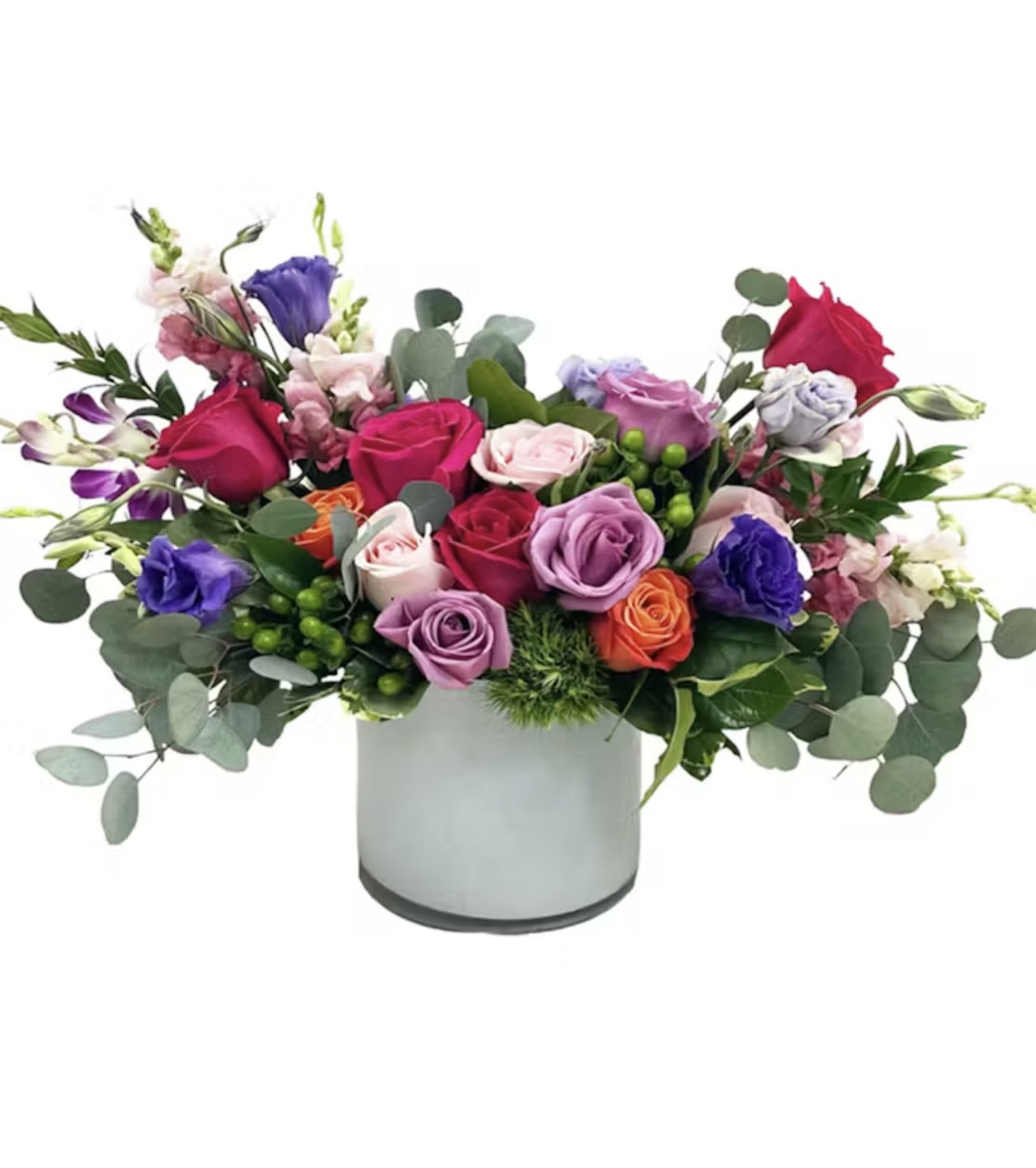 A multi-colored mix of roses evokes a playful summer breeze that brings warm colours and a positive mood.